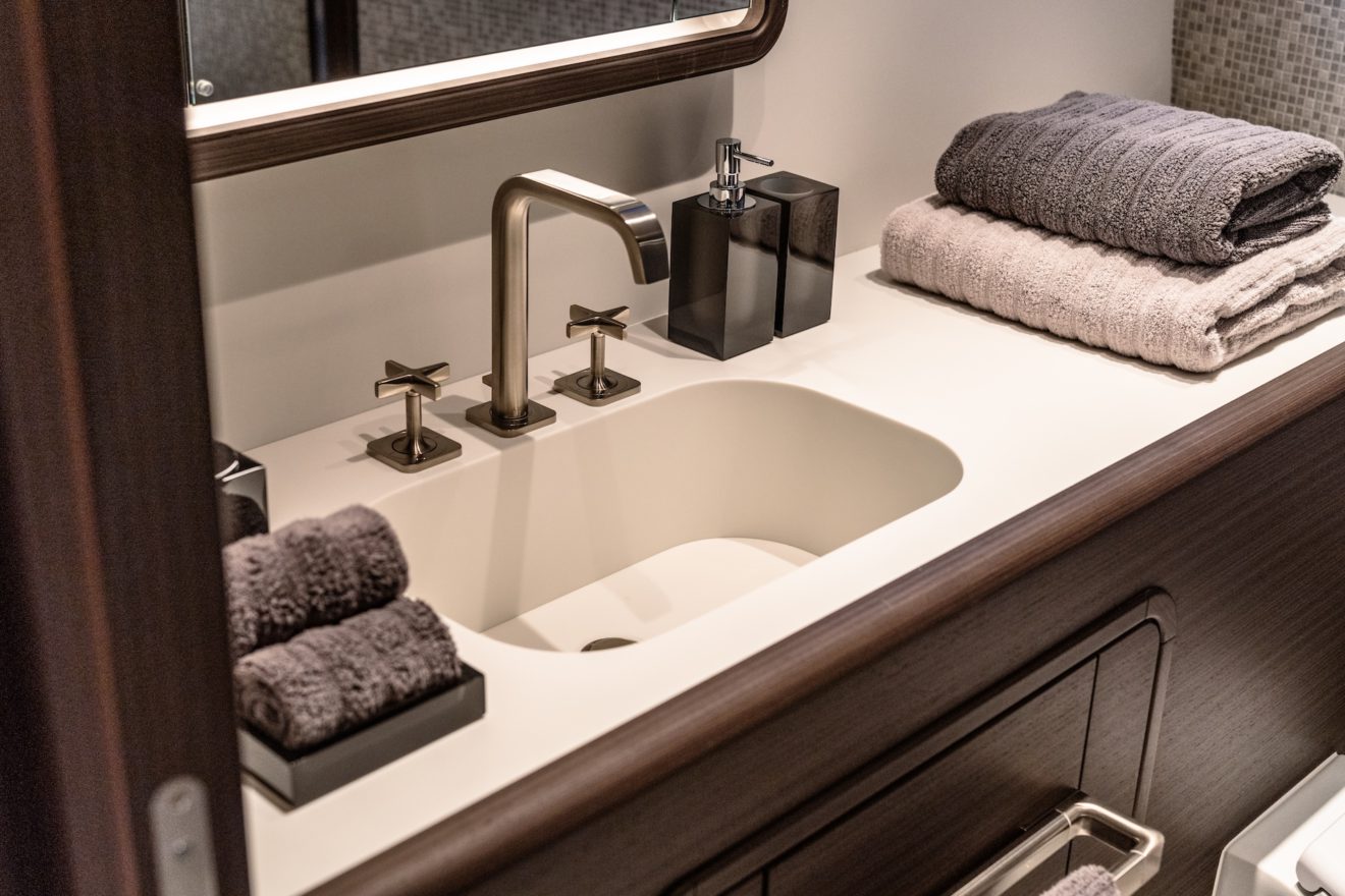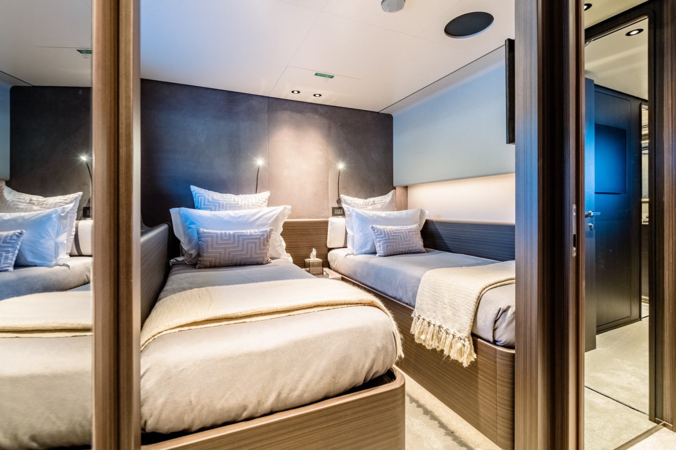M/Y AT ONE is one of the most customised and technically advanced Navetta 30, featuring a refined three-deck layout with a forward master suite, two VIPs and two guest cabins below, all en-suite, plus three crew cabins for discreet service. Her interiors are finished to exceptionally high standards, with a reimagined master cabin, marble-and-mosaic bathroom, bespoke furnishings, and collaborations with Dior, Chanel and Minotti, enriched by striped dark walnut throughout. Equipped with Seakeeper 40, dual Starlink, PURO filtration, an upgraded bridge and completed warranty works, AT ONE is MCA compliant and will be available better than new for the 2026 season.