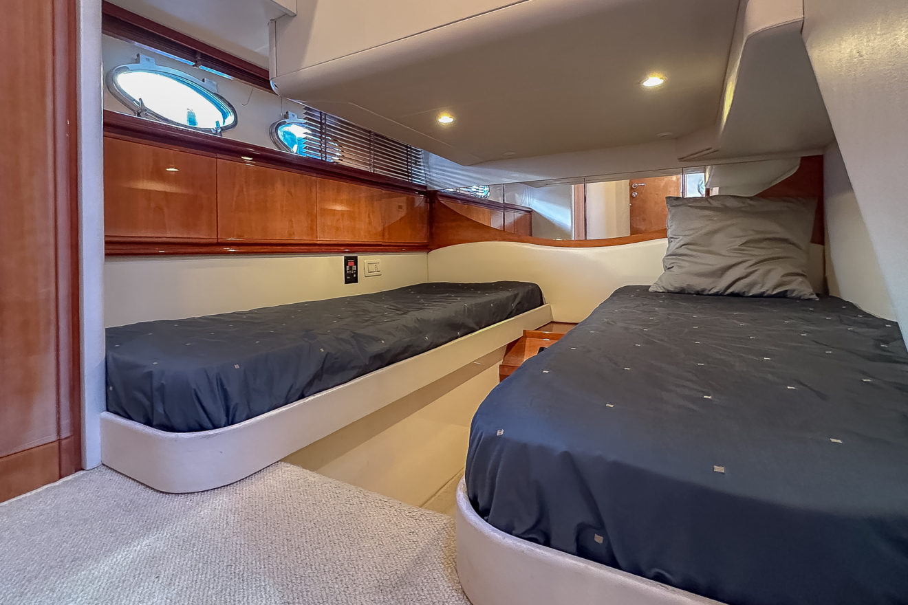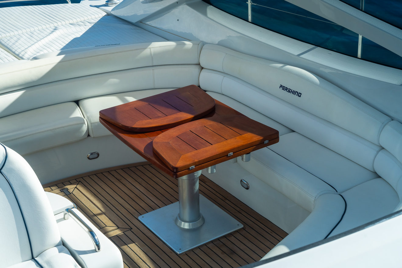The 2003 Pershing 52 M/Y AURA delivers the brand’s signature blend of performance, style, and comfort. Powered by twin MAN V10 D2810 engines producing 1050 hp each, she offers exhilarating speeds and confident handling, ideal for fast cruising. The sleek profile and sporty lines reflect Pershing’s iconic design, while the 3-cabin layout provides generous accommodation for family and guests. A bright salon, functional galley, and well-appointed master and guest cabins ensure comfort on longer stays. With spacious exterior lounging areas and the performance pedigree Pershing is known for, M/Y AURA is an exceptional choice for dynamic, stylish cruising.