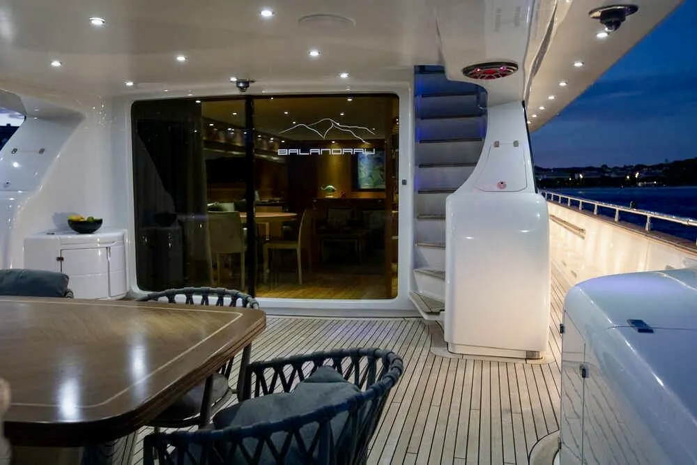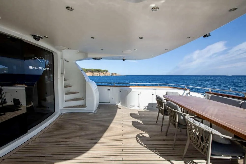 M/Y BALANDRAU is a 2004 Maiora 31 DP presented in excellent condition and fully ready to sail, following a major refit completed between 2024 and 2025. Maintained year-round by a professional crew, she offers timeless exterior lines and expansive decks designed for comfort and outdoor living. The spacious cockpit, large hydraulic bathing platform, and exceptional flybridge with bar, sunbathing, seating, and helm create ideal areas for relaxation and long passages. Inside, the bright and elegant interior features a welcoming saloon, formal dining and a fully equipped galley. Accommodation includes an aft master suite, three en-suite guest cabins, and separate crew quarters, delivering luxury, privacy, and refined cruising throughout.