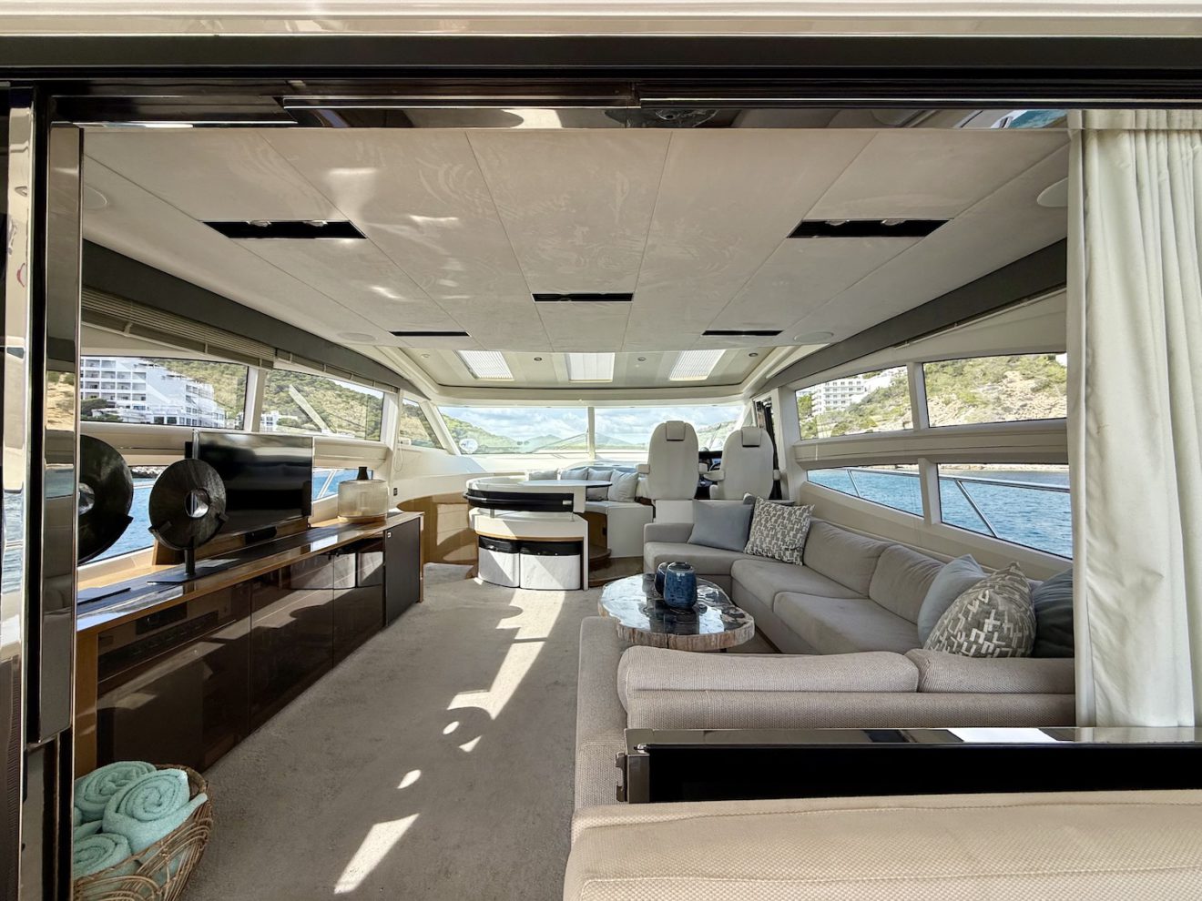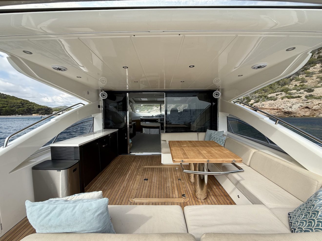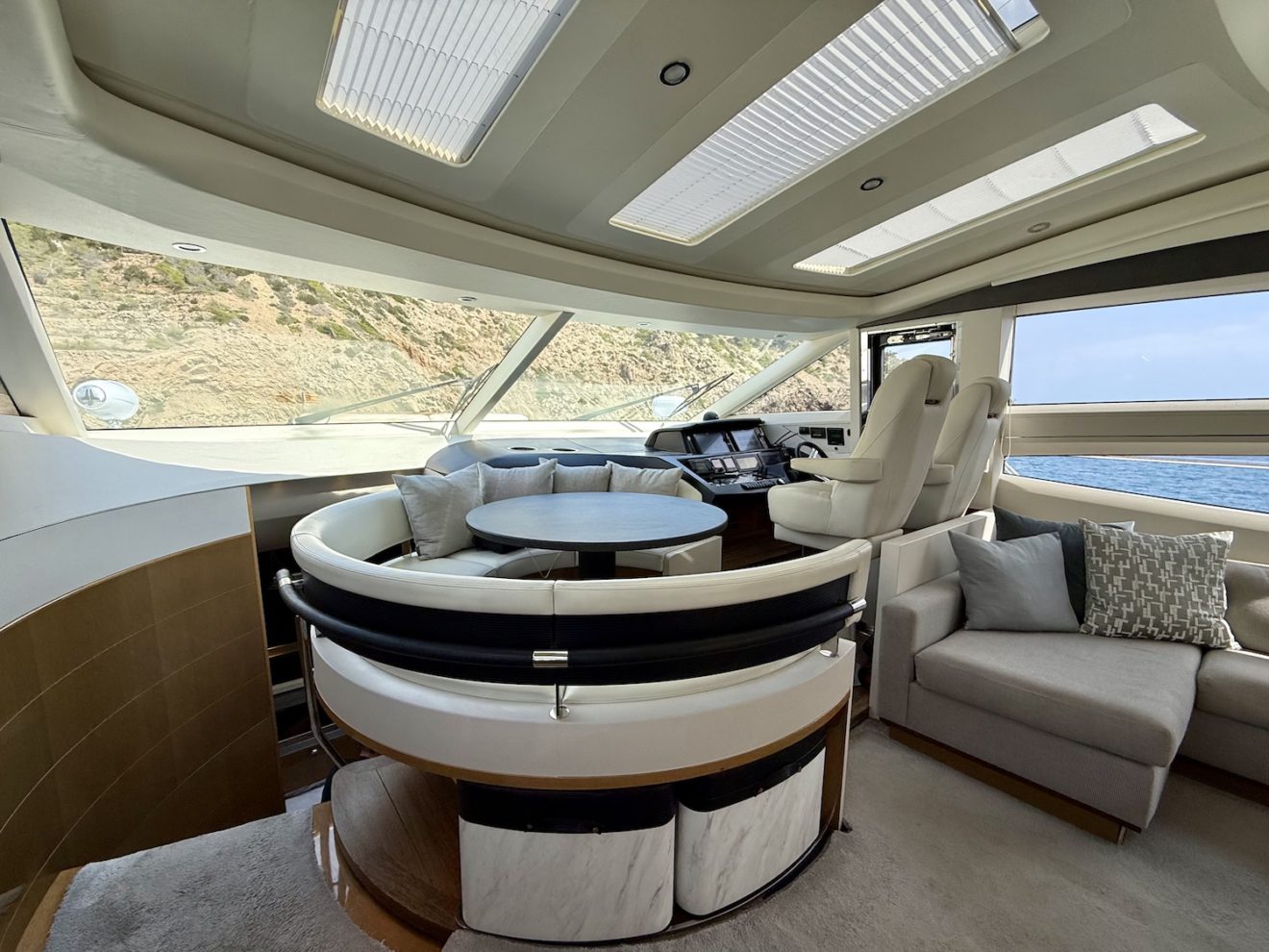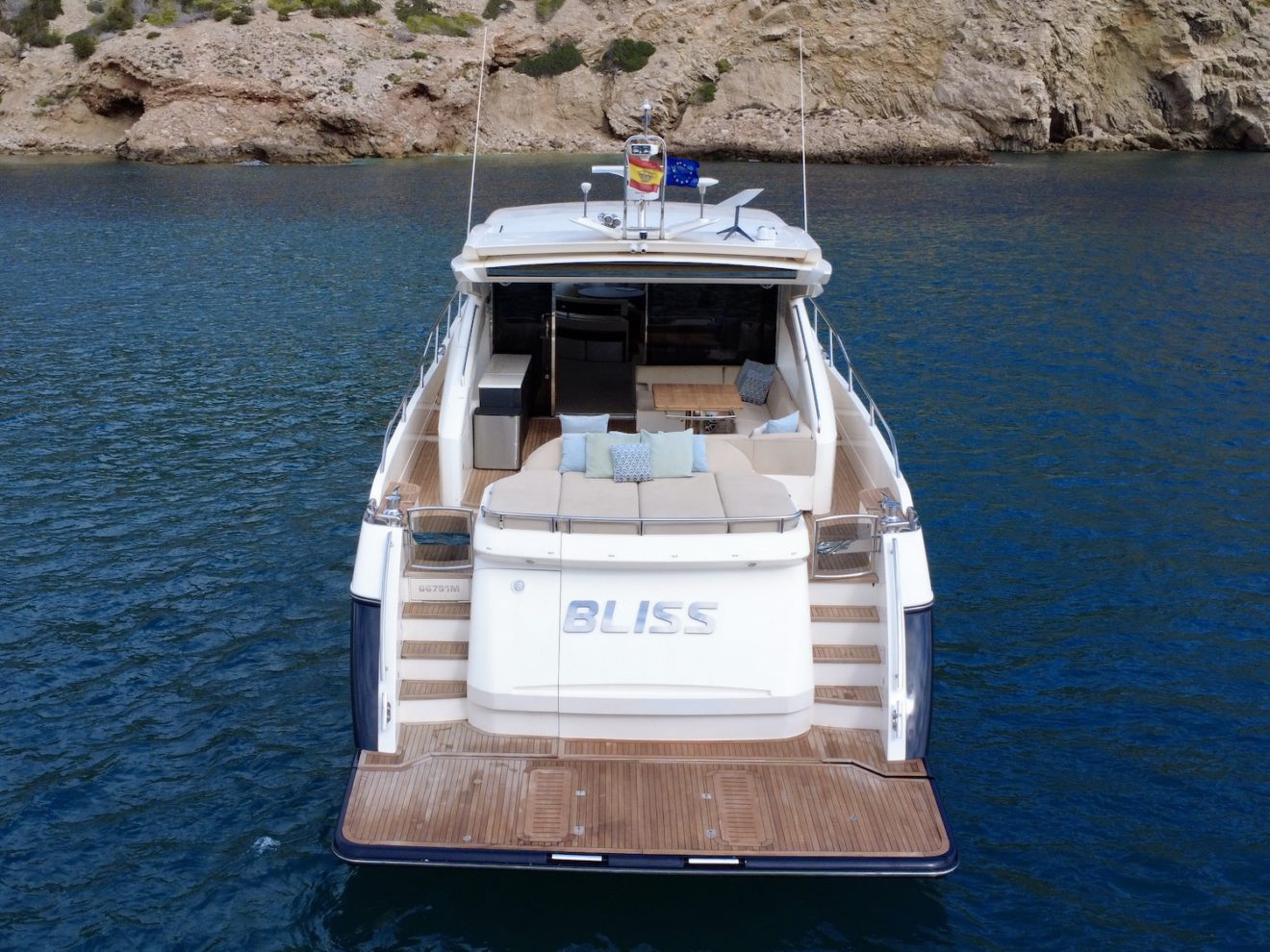M/Y BLISS, a 2015 Princess V72 launched in 2016, perfectly blends performance, comfort, and style. Maintained year-round by a professional captain and recently refitted, she is presented in outstanding condition. Her sleek, sporty lines frame generous exterior spaces, including a sunbathing foredeck, an alfresco aft cockpit, and a hydraulic bathing platform for easy sea access. The retractable-roof saloon opens to the elements, creating a bright, versatile social area connected to the fully equipped galley and helm. Below deck, three luxurious ensuite cabins—including a full- beam master suite—offer refined comfort and privacy, making BLISS an exceptional cruising yacht.