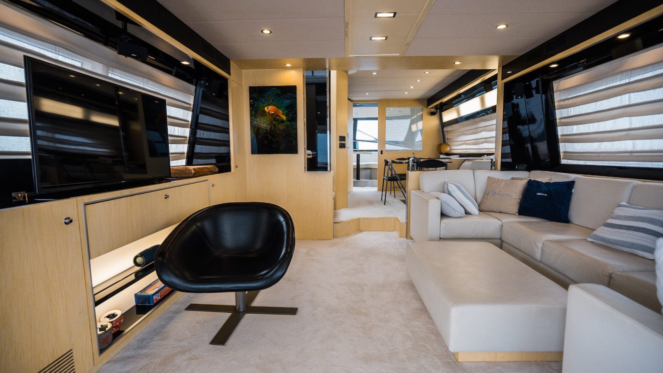 The Riva 75’ Venere M/Y BLUE PEARL stands as one of the brand’s most refined flybridge models, combining elegant Italian styling with dependable performance. Designed by Officina Italiana Design, she features sleek, timeless lines and a well-balanced profile that remains highly appealing on today’s market. Powered by twin MTU engines, she delivers smooth cruising and confident handling, making her ideal for extended coastal navigation. Exterior spaces are generous and versatile, offering multiple areas for relaxation and entertaining. Inside, her warm cherry wood finishes and refined detailing create a welcoming, classic Riva atmosphere, perfectly suited to comfortable and stylish onboard living.
