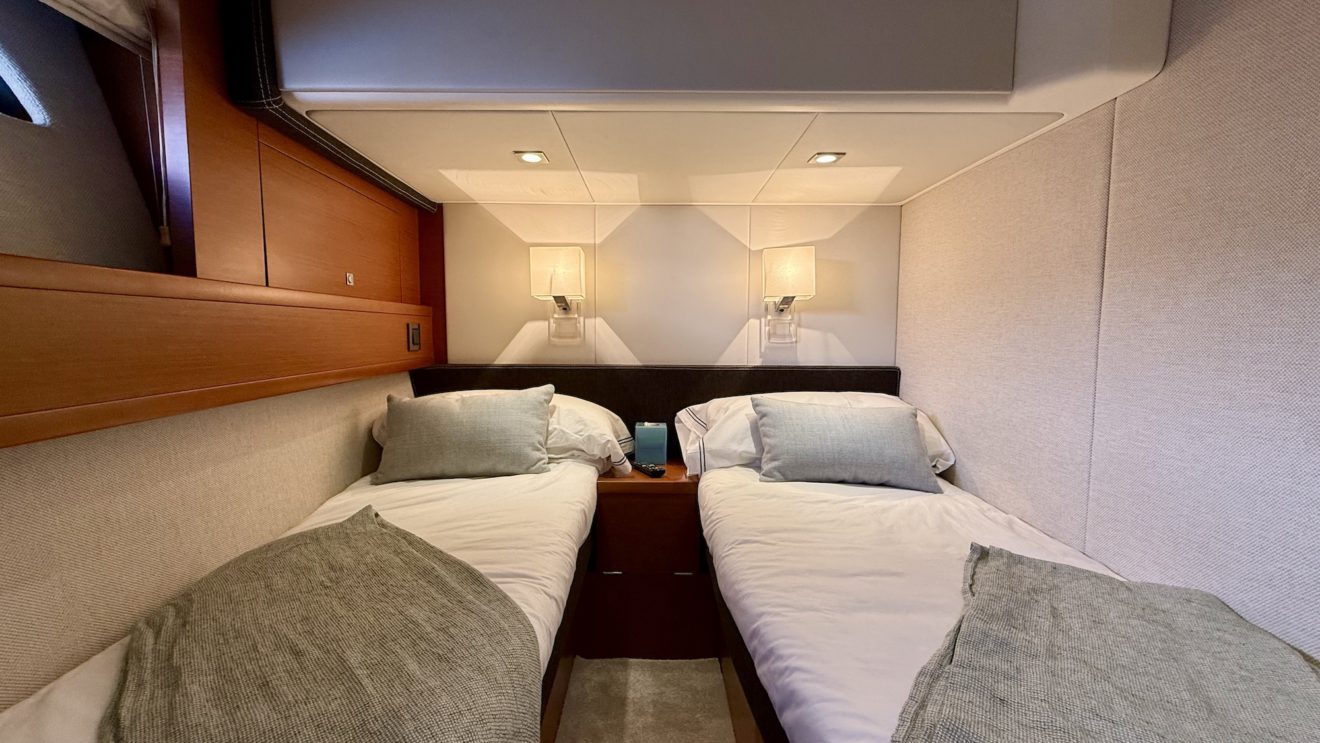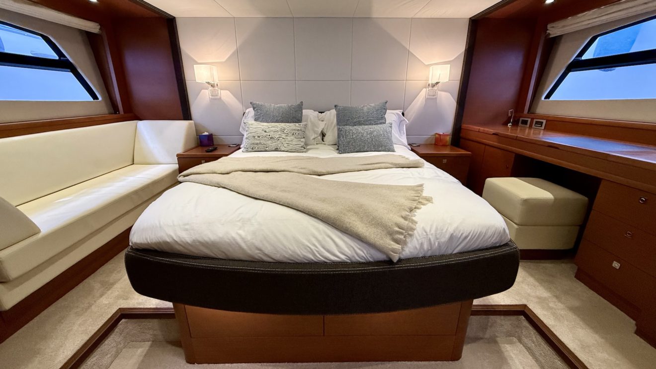 M/Y BLUEARK is a sleek Prestige 620S that underwent a major refit between 2024 and 2025, presenting in excellent condition. Her sporty hardtop profile and streamlined lines define a yacht designed for outdoor enjoyment, with a spacious aft cockpit, electric hardtop, generous sunbathing areas, and a hydraulic bathing platform for easy sea access and water sports. Inside, large windows and a smart layout create a bright, contemporary saloon with an open galley ideal for socialising. Below deck, BLUEARK offers a full-beam master suite, a forward VIP cabin, and an additional guest cabin, all finished to the refined standards expected of the Prestige range.