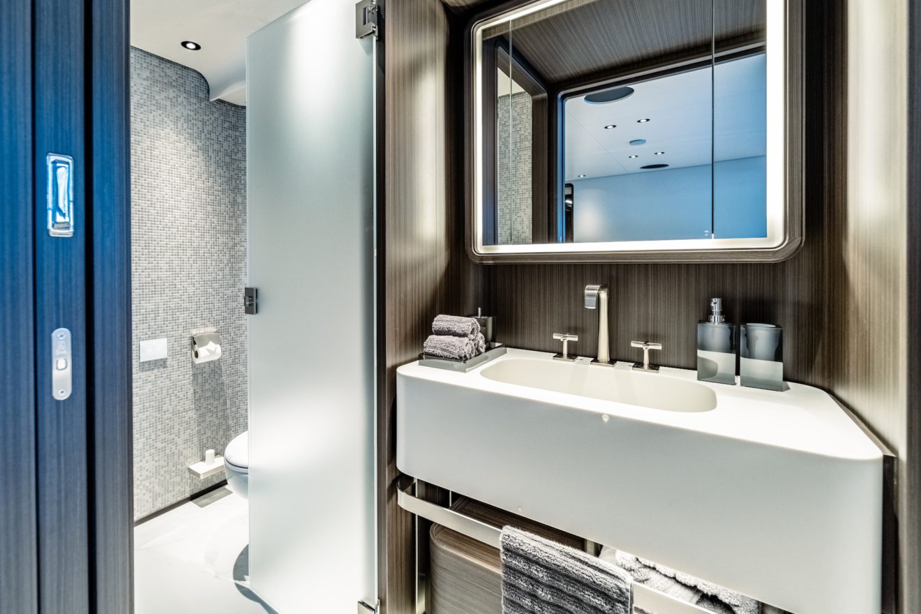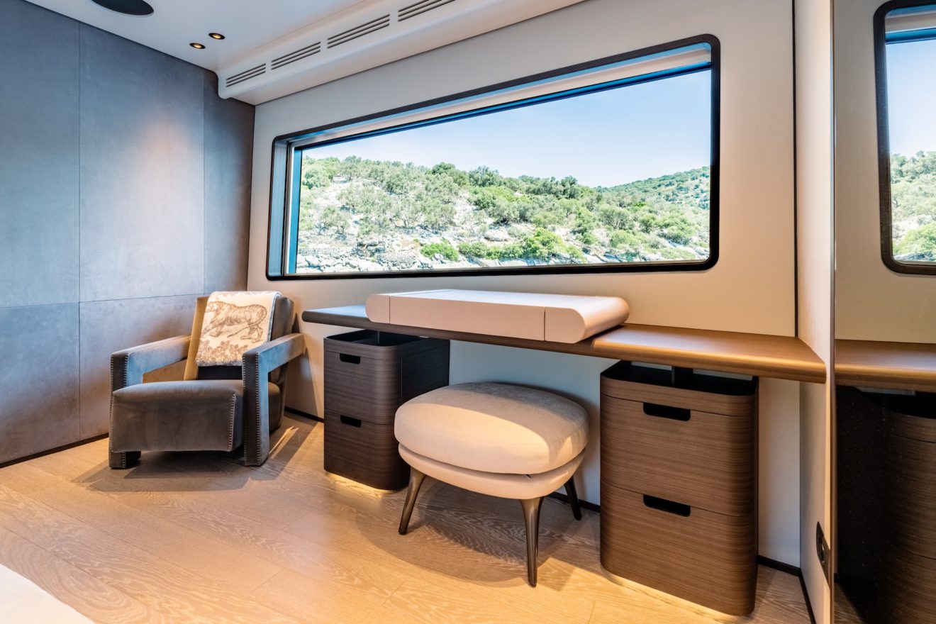 M/Y AT ONE is one of the most customised and technically advanced Navetta 30, featuring a refined three-deck layout with a forward master suite, two VIPs and two guest cabins below, all en-suite, plus three crew cabins for discreet service. Her interiors are finished to exceptionally high standards, with a reimagined master cabin, marble-and-mosaic bathroom, bespoke furnishings, and collaborations with Dior, Chanel and Minotti, enriched by striped dark walnut throughout. Equipped with Seakeeper 40, dual Starlink, PURO filtration, an upgraded bridge and completed warranty works, AT ONE is MCA compliant and will be available better than new for the 2026 season.