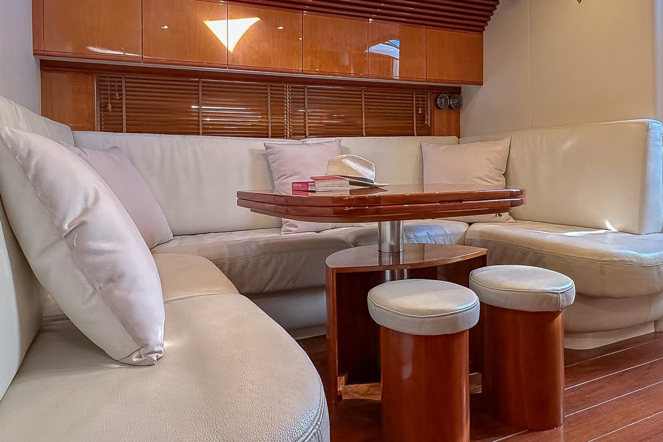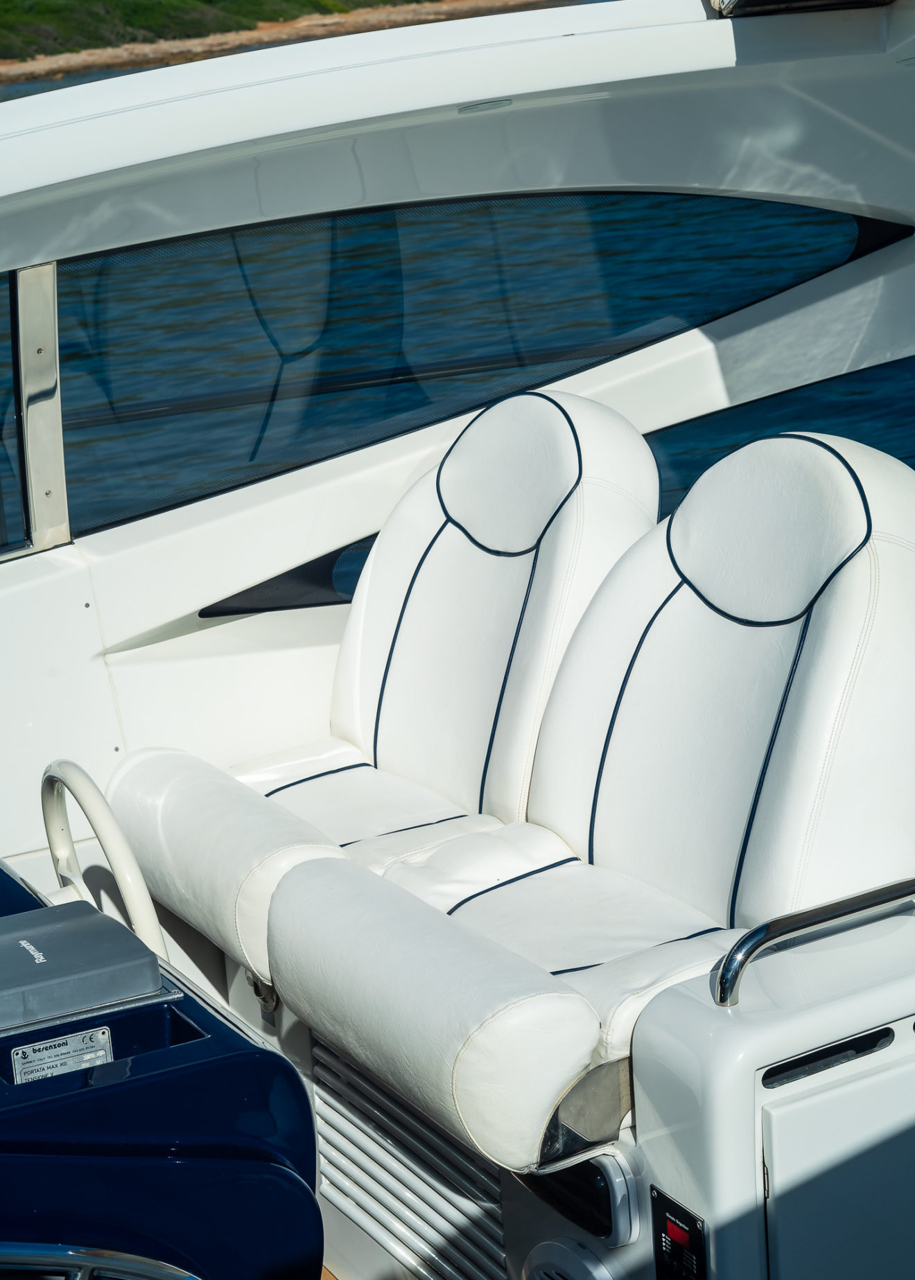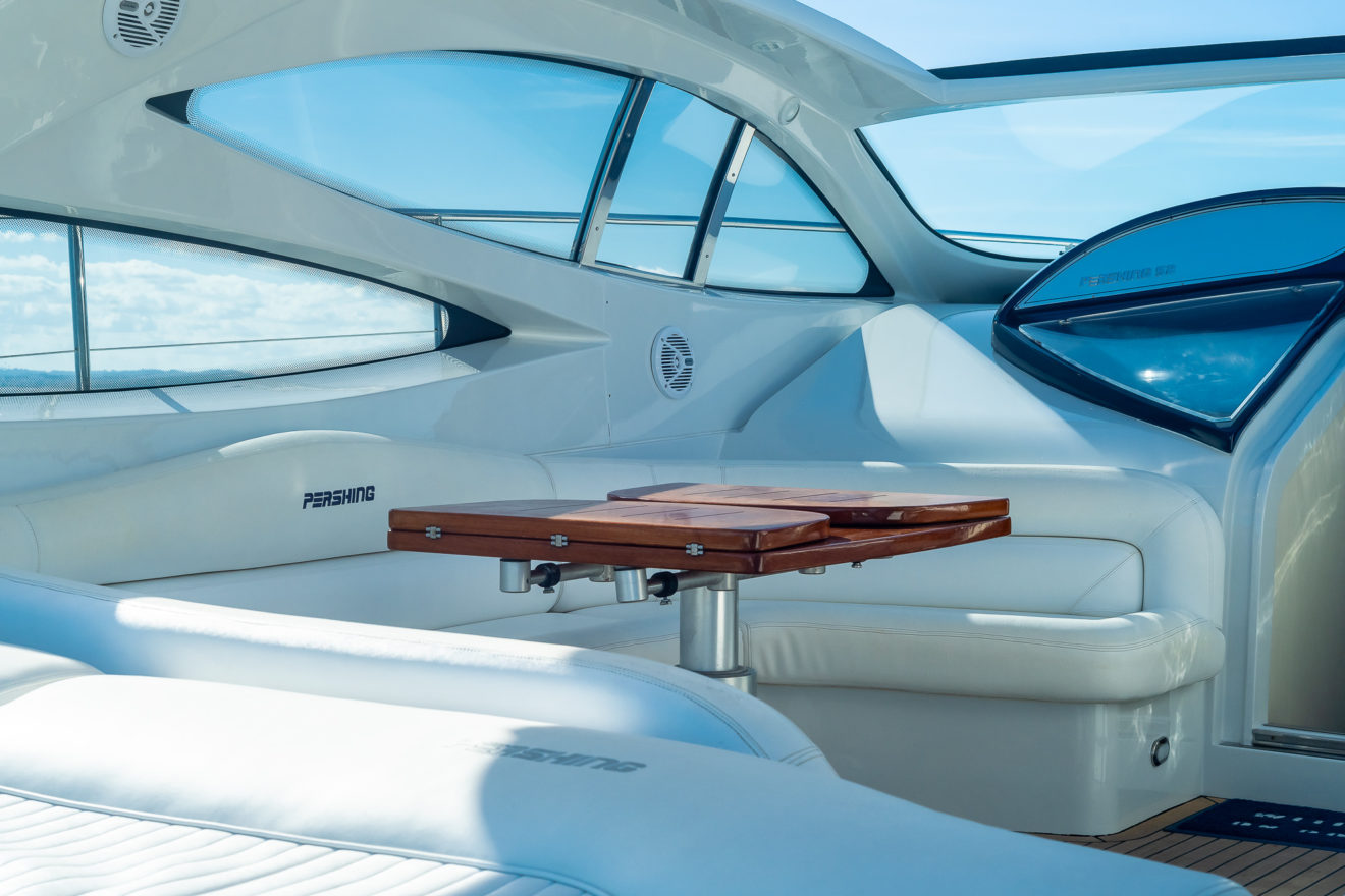 The 2003 Pershing 52 M/Y AURA delivers the brand’s signature blend of performance, style, and comfort. Powered by twin MAN V10 D2810 engines producing 1050 hp each, she offers exhilarating speeds and confident handling, ideal for fast cruising. The sleek profile and sporty lines reflect Pershing’s iconic design, while the 3-cabin layout provides generous accommodation for family and guests. A bright salon, functional galley, and well-appointed master and guest cabins ensure comfort on longer stays. With spacious exterior lounging areas and the performance pedigree Pershing is known for, M/Y AURA is an exceptional choice for dynamic, stylish cruising.