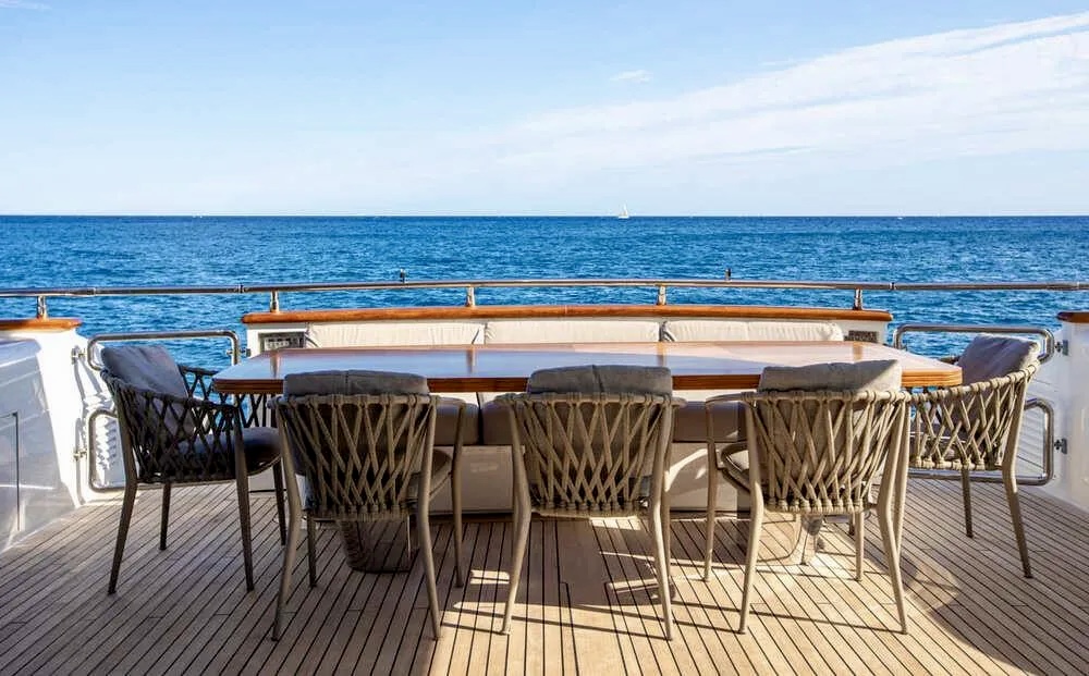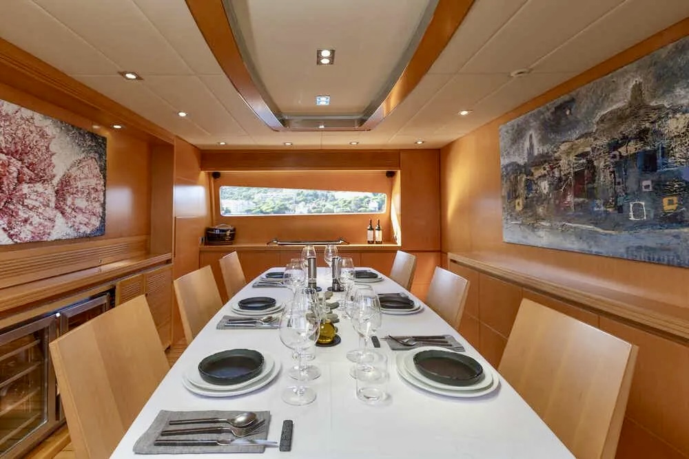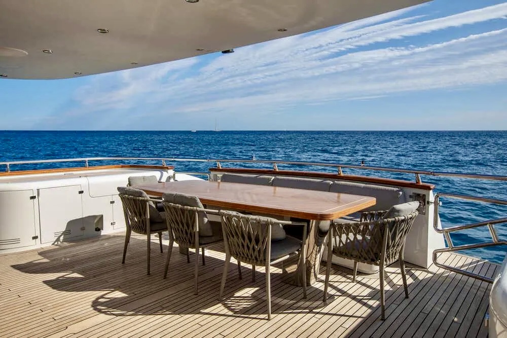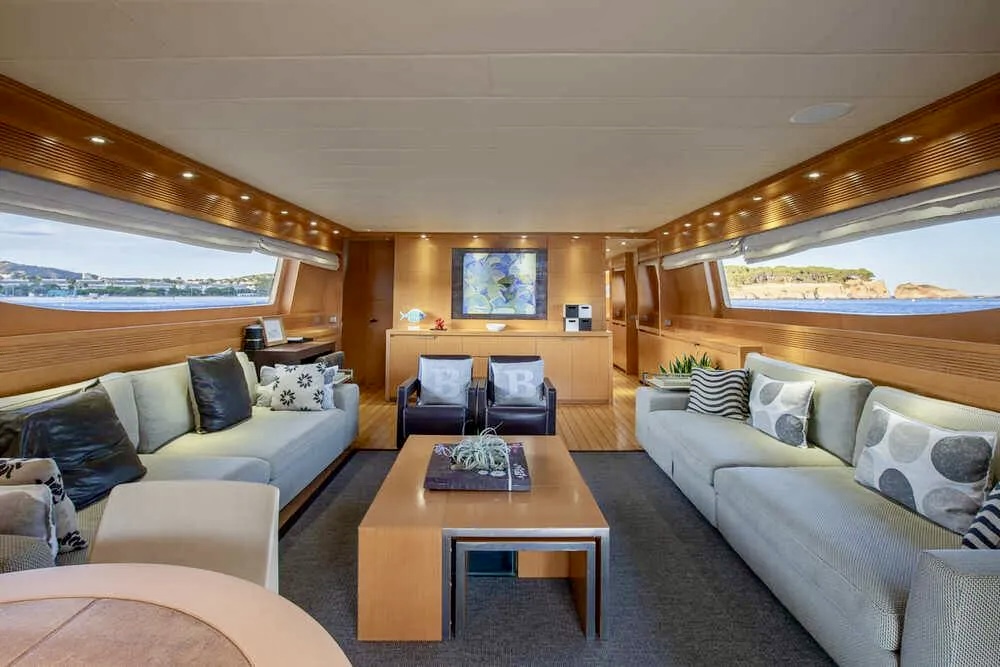 M/Y BALANDRAU is a 2004 Maiora 31 DP presented in excellent condition and fully ready to sail, following a major refit completed between 2024 and 2025. Maintained year-round by a professional crew, she offers timeless exterior lines and expansive decks designed for comfort and outdoor living. The spacious cockpit, large hydraulic bathing platform, and exceptional flybridge with bar, sunbathing, seating, and helm create ideal areas for relaxation and long passages. Inside, the bright and elegant interior features a welcoming saloon, formal dining and a fully equipped galley. Accommodation includes an aft master suite, three en-suite guest cabins, and separate crew quarters, delivering luxury, privacy, and refined cruising throughout.