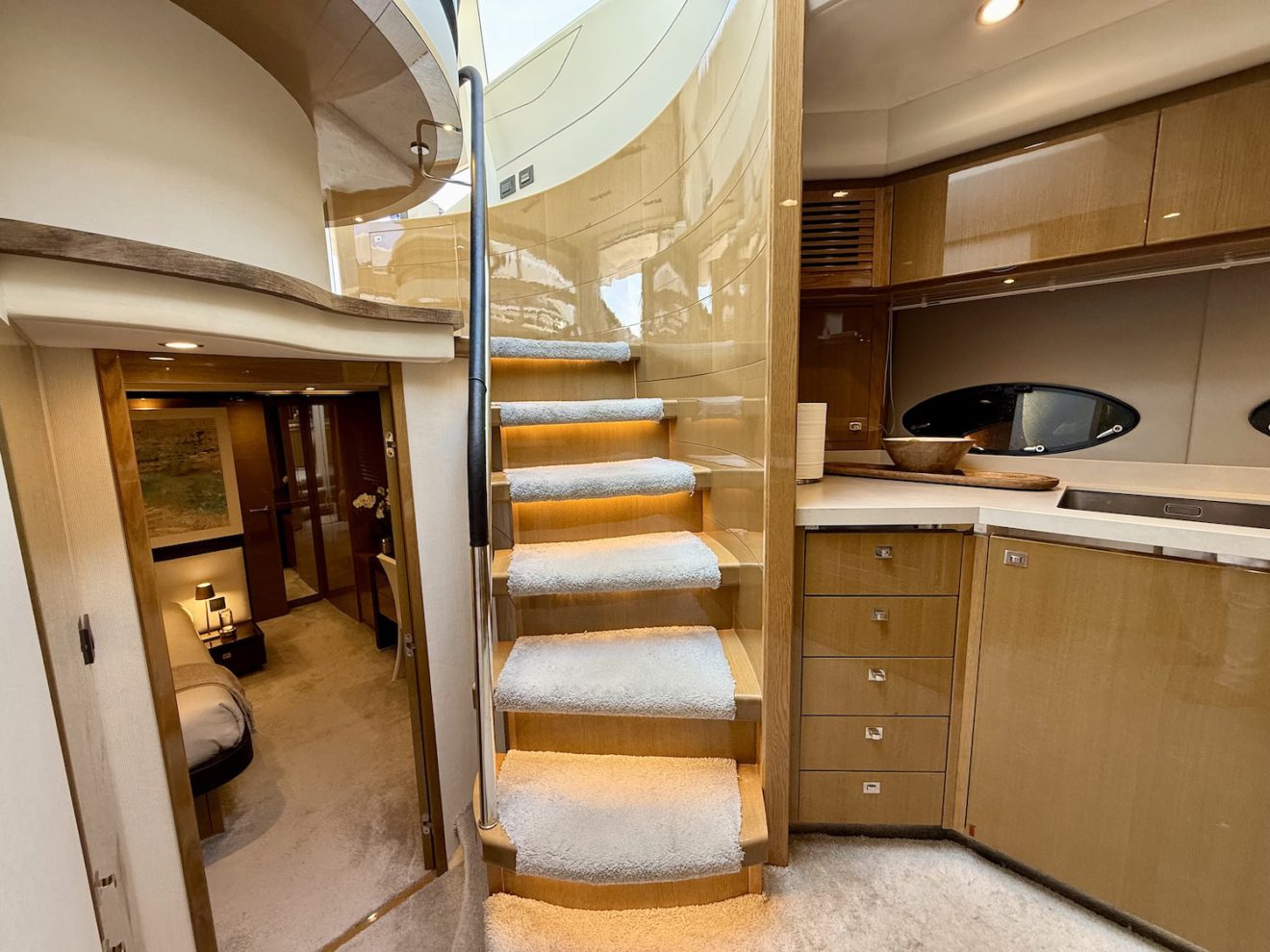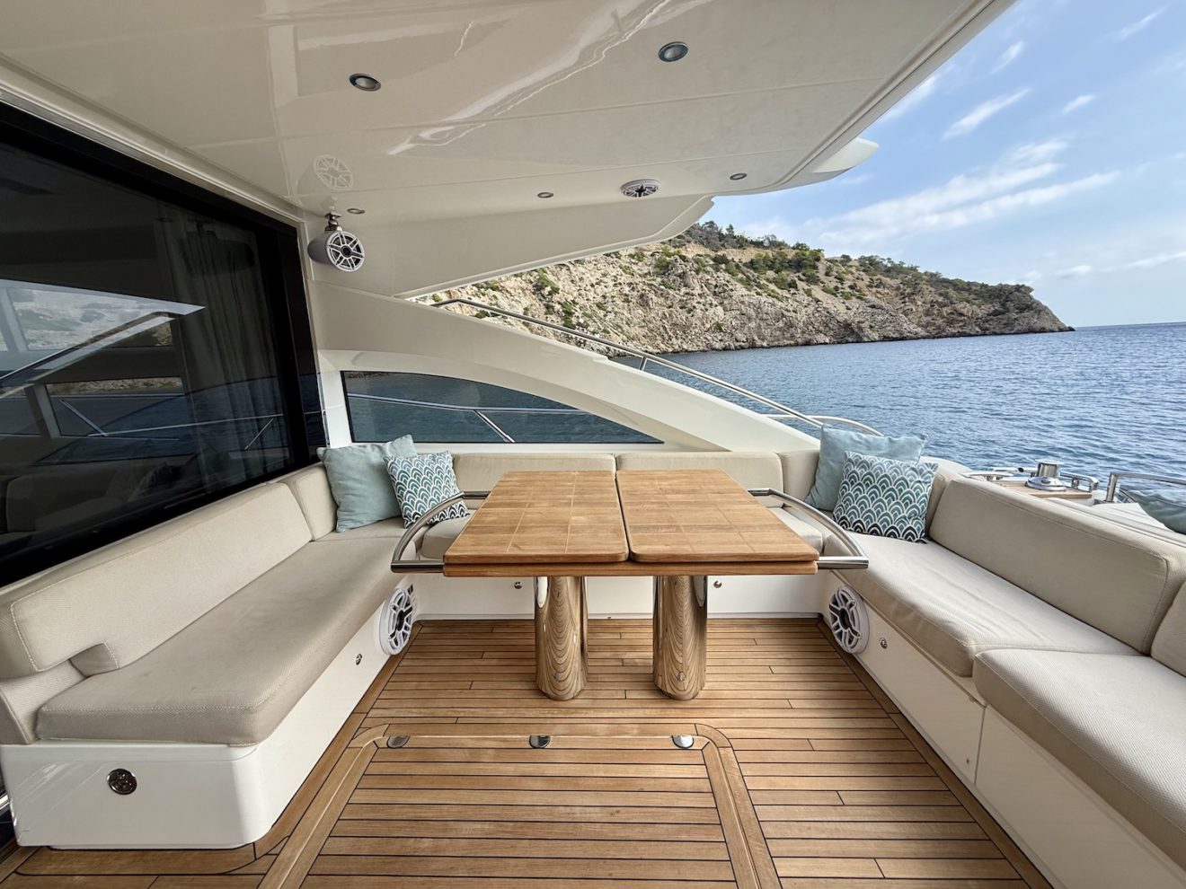 M/Y BLISS, a 2015 Princess V72 launched in 2016, perfectly blends performance, comfort, and style. Maintained year-round by a professional captain and recently refitted, she is presented in outstanding condition. Her sleek, sporty lines frame generous exterior spaces, including a sunbathing foredeck, an alfresco aft cockpit, and a hydraulic bathing platform for easy sea access. The retractable-roof saloon opens to the elements, creating a bright, versatile social area connected to the fully equipped galley and helm. Below deck, three luxurious ensuite cabins—including a full- beam master suite—offer refined comfort and privacy, making BLISS an exceptional cruising yacht.