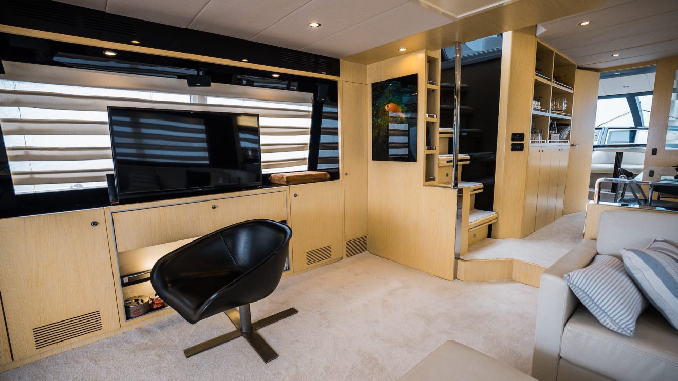 The Riva 75’ Venere M/Y BLUE PEARL stands as one of the brand’s most refined flybridge models, combining elegant Italian styling with dependable performance. Designed by Officina Italiana Design, she features sleek, timeless lines and a well-balanced profile that remains highly appealing on today’s market. Powered by twin MTU engines, she delivers smooth cruising and confident handling, making her ideal for extended coastal navigation. Exterior spaces are generous and versatile, offering multiple areas for relaxation and entertaining. Inside, her warm cherry wood finishes and refined detailing create a welcoming, classic Riva atmosphere, perfectly suited to comfortable and stylish onboard living.
