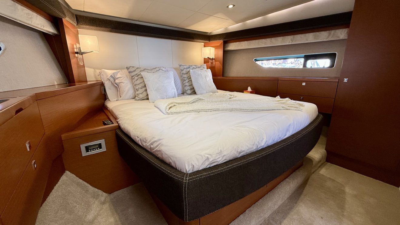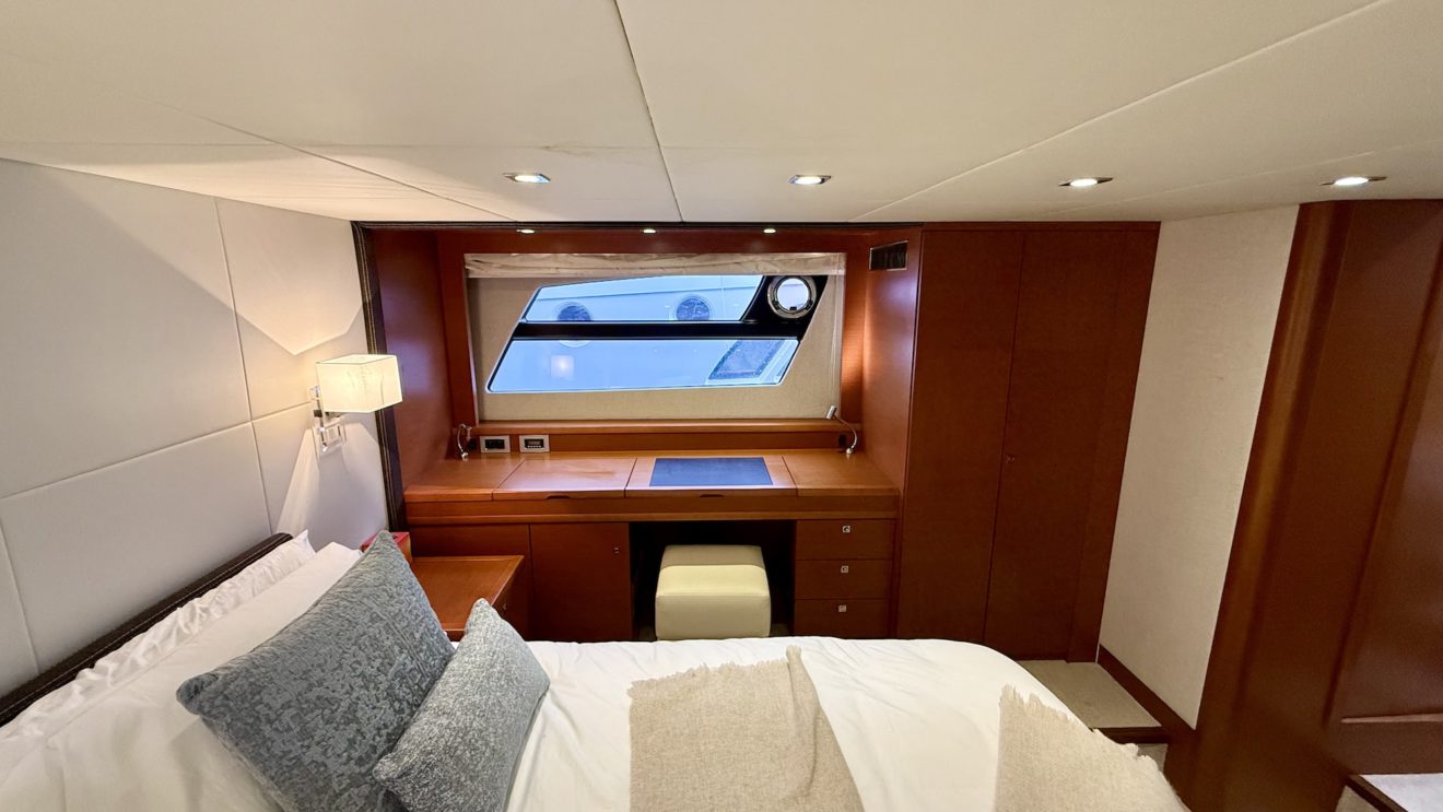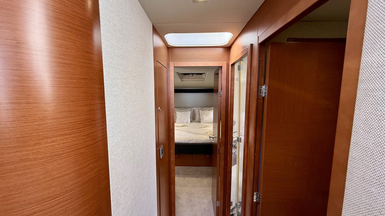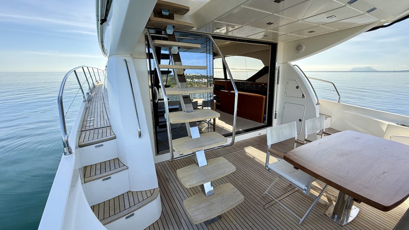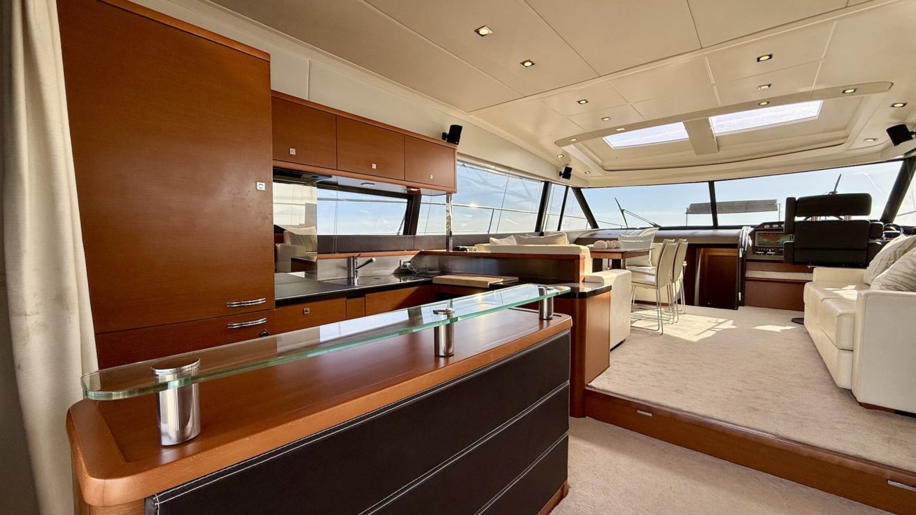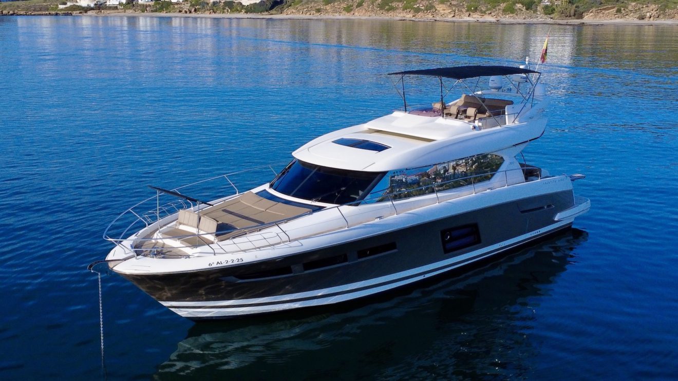 M/Y BLUEARK is a sleek Prestige 620S that underwent a major refit between 2024 and 2025, presenting in excellent condition. Her sporty hardtop profile and streamlined lines define a yacht designed for outdoor enjoyment, with a spacious aft cockpit, electric hardtop, generous sunbathing areas, and a hydraulic bathing platform for easy sea access and water sports. Inside, large windows and a smart layout create a bright, contemporary saloon with an open galley ideal for socialising. Below deck, BLUEARK offers a full-beam master suite, a forward VIP cabin, and an additional guest cabin, all finished to the refined standards expected of the Prestige range.