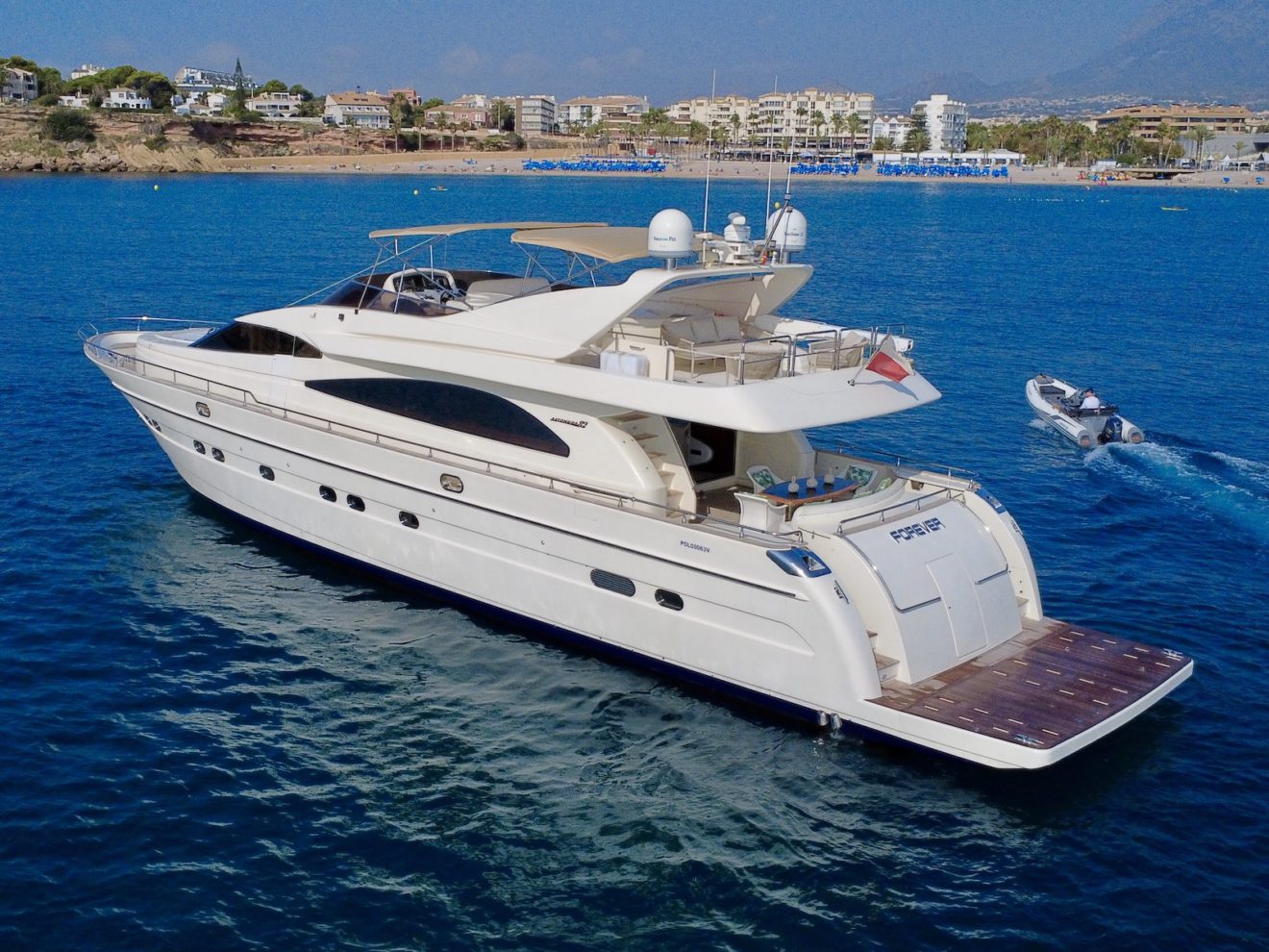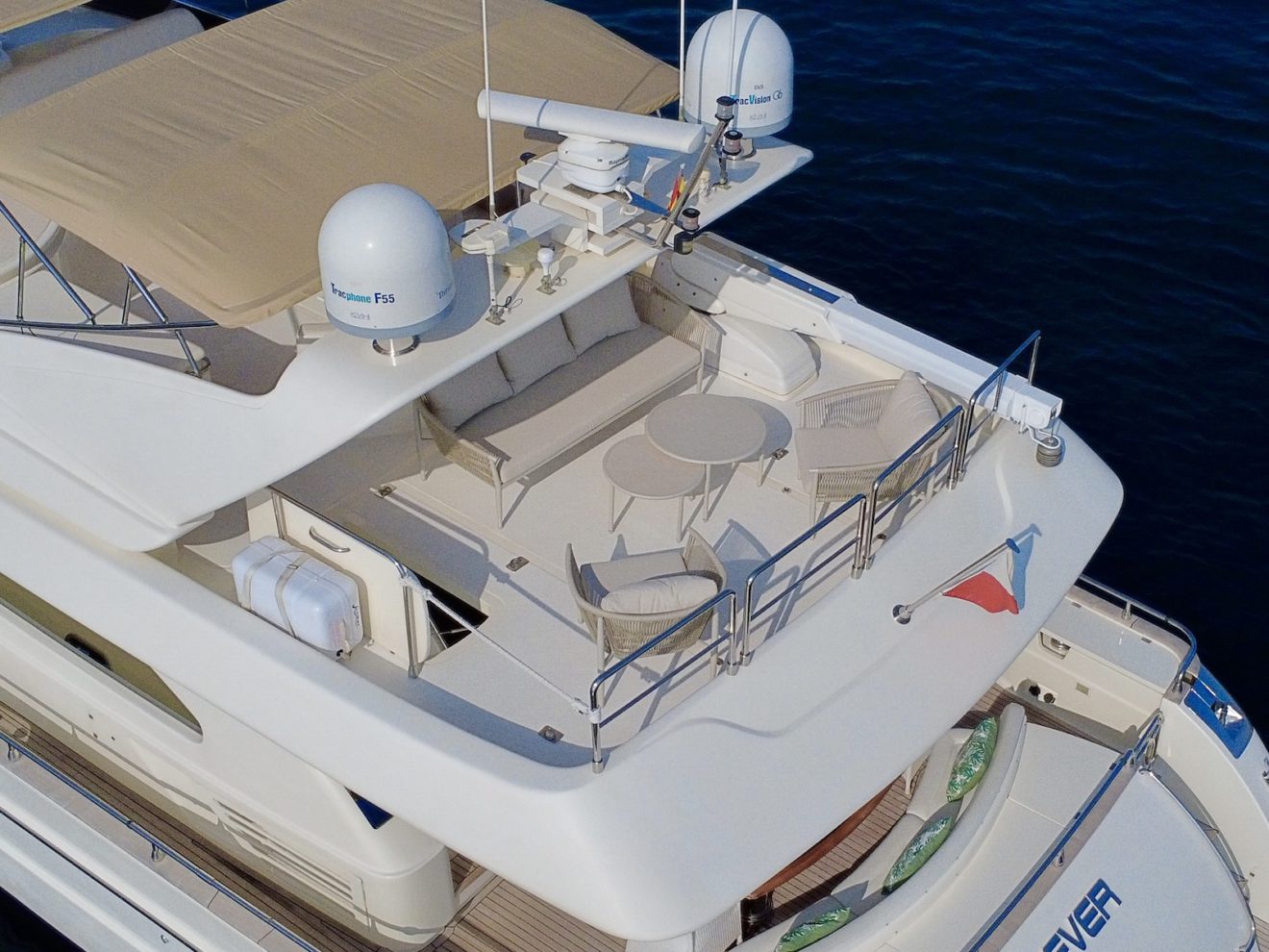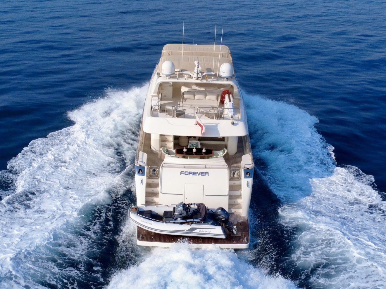 Built by Astondoa Yachts in 2003, M/Y FOREVER is a well-maintained 28m motor yacht, consistently used for private and family cruising in Spain. Recently, in 2024, the current owner undertook a major refit focused on safety and mechanical upgrades, ensuring the yacht is in excellent condition. The flybridge includes a hydraulic dinghy crane, wet bar, BBQ, and seating areas. The main deck offers spacious outdoor lounging, while the interior accommodates up to seven guests in three well-appointed cabins, including a large master suite. With a balance of comfort, practicality, and performance, M/Y FOREVER is a strong option in its class.