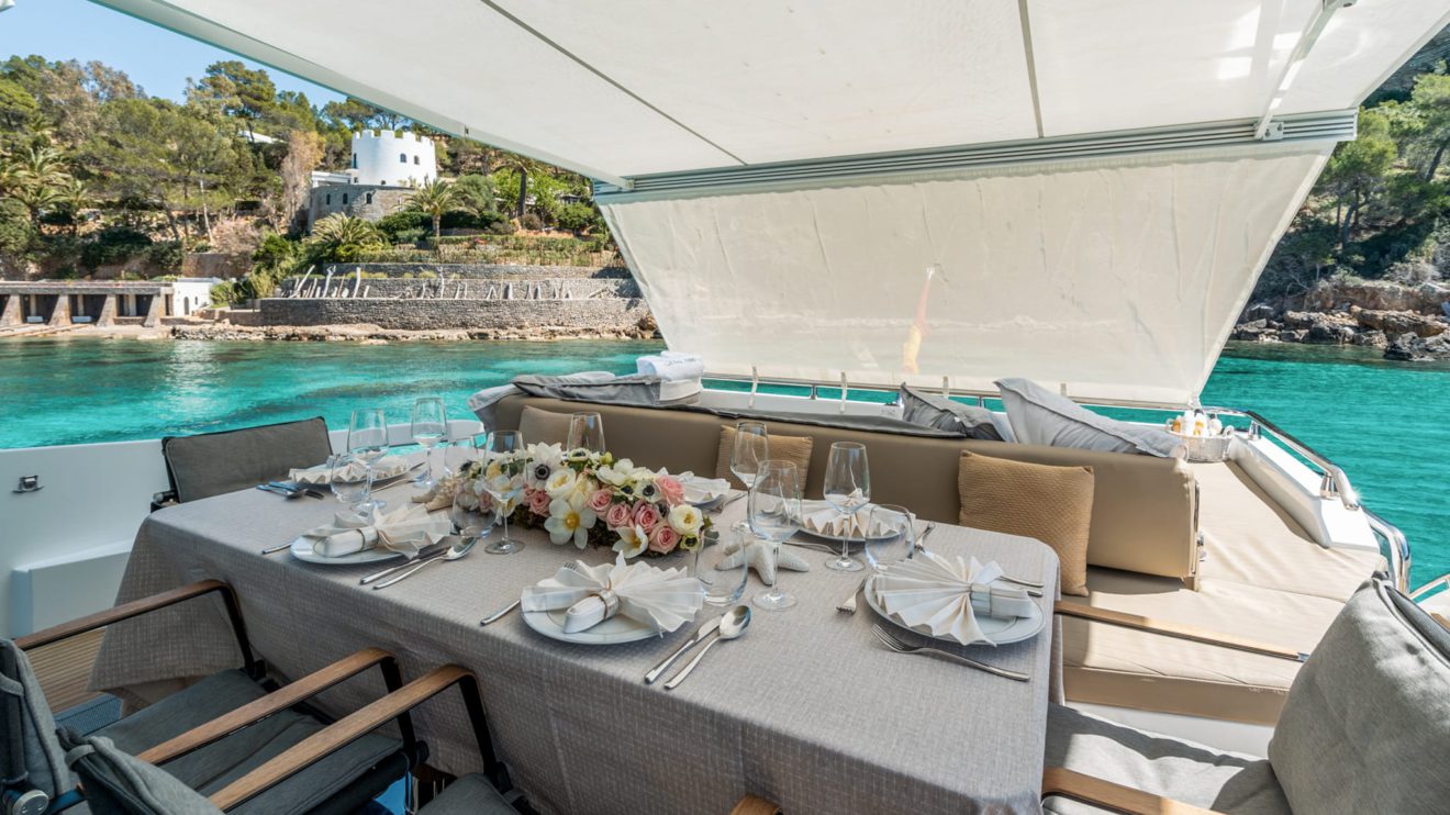 M/Y GRAN ABE II features a dynamic yet practical layout that maximizes both indoor and outdoor living. The exterior offers expansive sunbathing areas forward and aft, along with a beach club-style stern that creates a seamless connection to the sea. The cockpit flows naturally into the main salon, where large panoramic windows fill the contemporary interior with natural light. The salon connects to a well-appointed dining area and galley, designed for comfort and functionality. Below deck, the intelligently arranged accommodations host up to nine guests across well-proportioned cabins, delivering privacy, versatility and refined onboard living throughout.